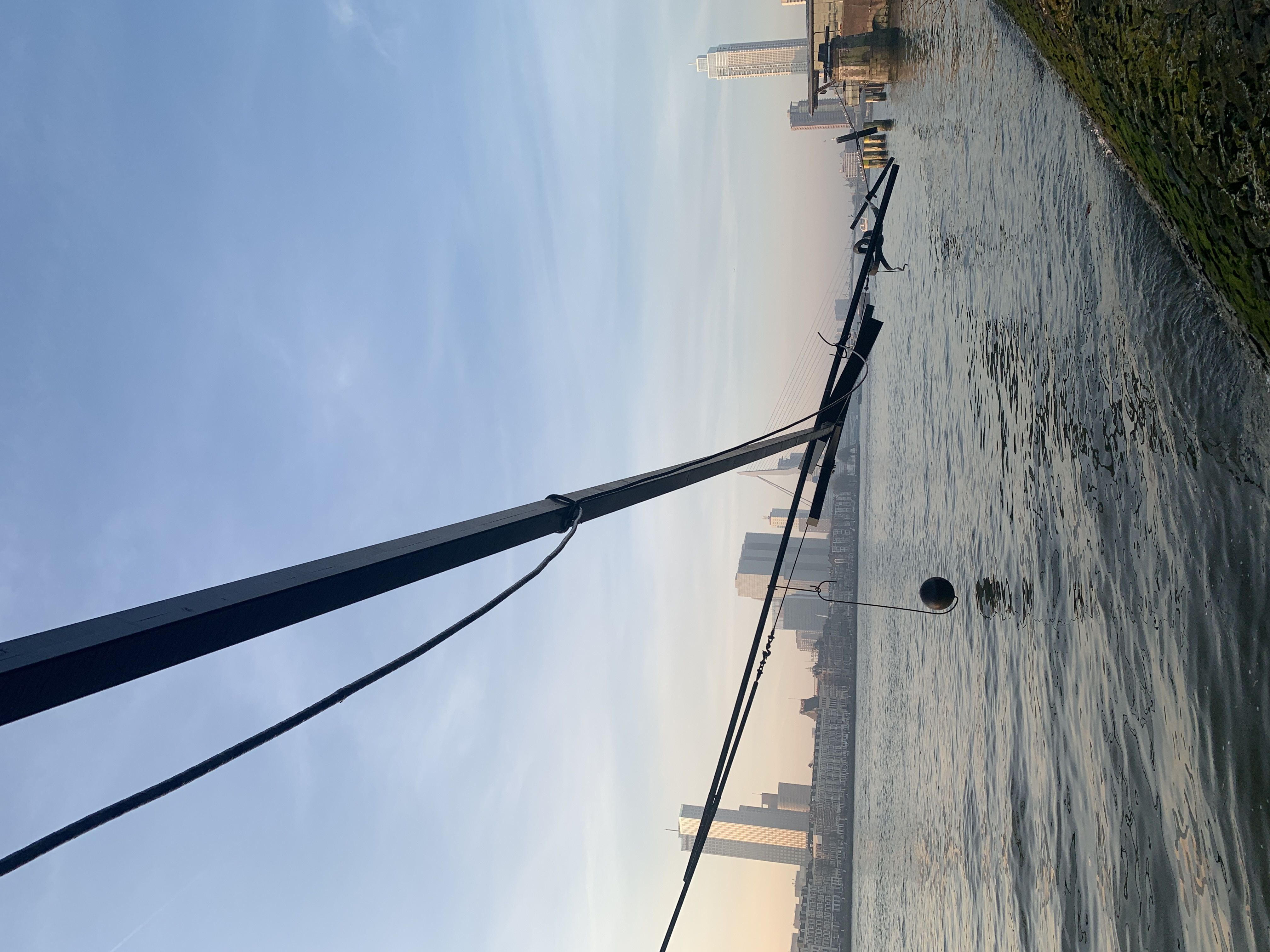 Het Maasbeeld ligt op de route van de kinderopvang van mijn dochter in Rotterdam-Kralingen naar de school waar ik werk in Rotterdam-West. Ik werk hier alleen op maandag en woensdag. Doordat ik deze route ben gaan fietsen dankzij de ligging van de kinderopvang is dit mijn nieuwe lievelingskunstwerk in de Rotterdamse publieke ruimte geworden. Ons wederzien stemt me altijd vrolijk. Het Maasbeeld is een groot werk en strekt zich met wisselend volume breed uit langs de kade. Het werk speelt met de omgeving en de omgeving speelt met het kunstwerk. Eb en vloed worden zichtbaar door de hangende bal die vaak boven het water bungelt, soms er half in ligt. Meeuwen en andere watervogels maken gretig gebruik van de 182 meter aan gespannen kabels om uit te rusten en over het water uit te tuuren. Hun witte poepvlekken vormen abstracte kunstwerkjes op het grauwe staal. Soms zitten er ook aalscholvers tussen die zich als een soort oervogels afsteken tegen de rest van de vogelsoorten. Ik hou steeds een beetje meer van dit kunstwerk. Staal voelde nog nooit zo warm.